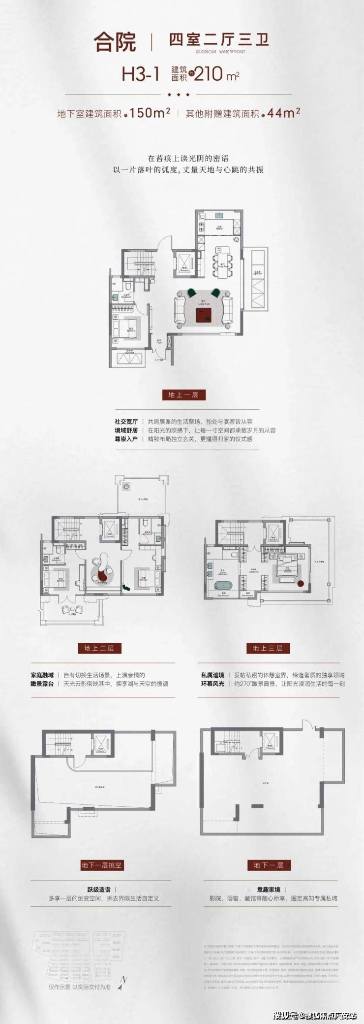 叠墅 149-179㎡:总价1100-1600 万,下叠带庭院地下室、上叠带露台