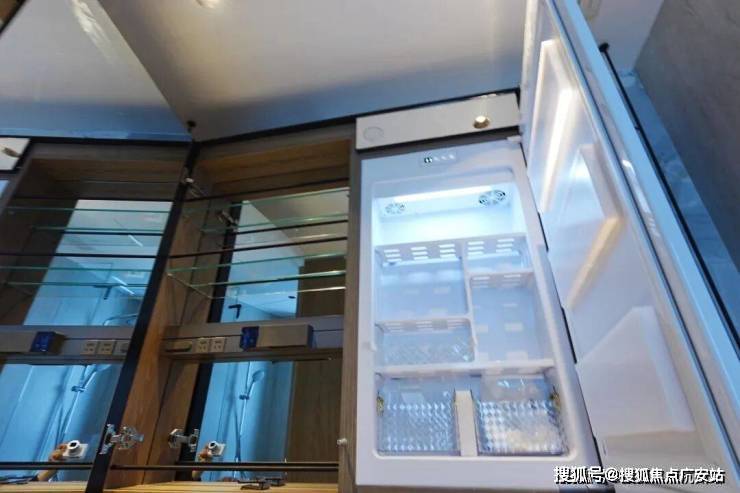 厨房的橱柜板材和107㎡颜色不同,冰箱位置就预留在餐厅一侧。其余配置没什么差别。