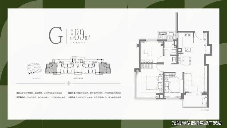 1、全部南向大面宽设计,保证最为出众的采光和视野需求;