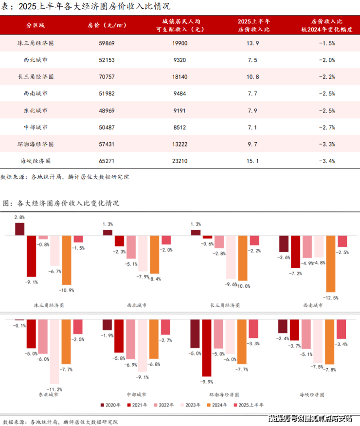 报告显示,2025上半年一线城市房价收入比为25.4,较2024年下降2.7%;二线城市房价收入比为10.5,较2024年下降2.8%;三四线城市房价收入比为7.4,较2023年下降3.0%。