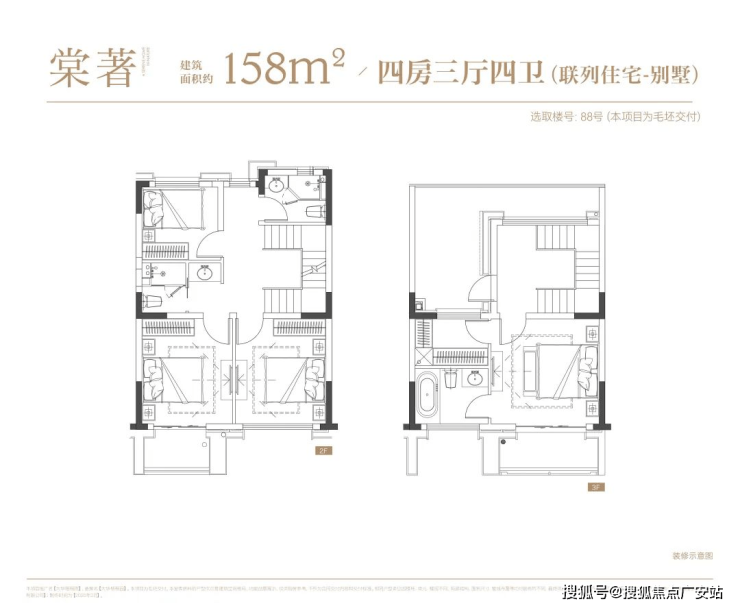 Stacked villa: The stacked villa has a total of four floors, consisting of the upper and lower floors. The floor area of the upper floor is approximately 139 square meters, while that of the lower floor is about 142 square meters.