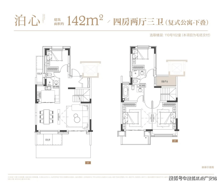 拥有约142平方米的四室两厅三卫的下叠户型,配备宽敞的地下空间,可依照个人喜好自由规划空间布局。