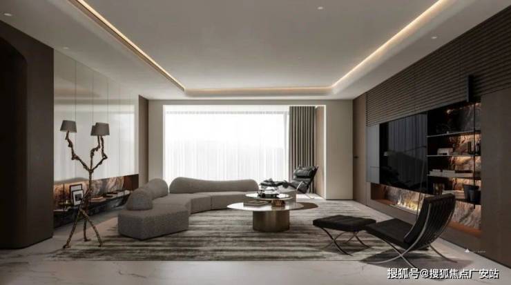 Во-первых, гостиная использует консилиум + открытую планировку кабинета, усиливает семейное взаимодействие, восстанавливает социальный центр, оптимизирует пространственный масштаб и разбивает «чувство пустоты»;