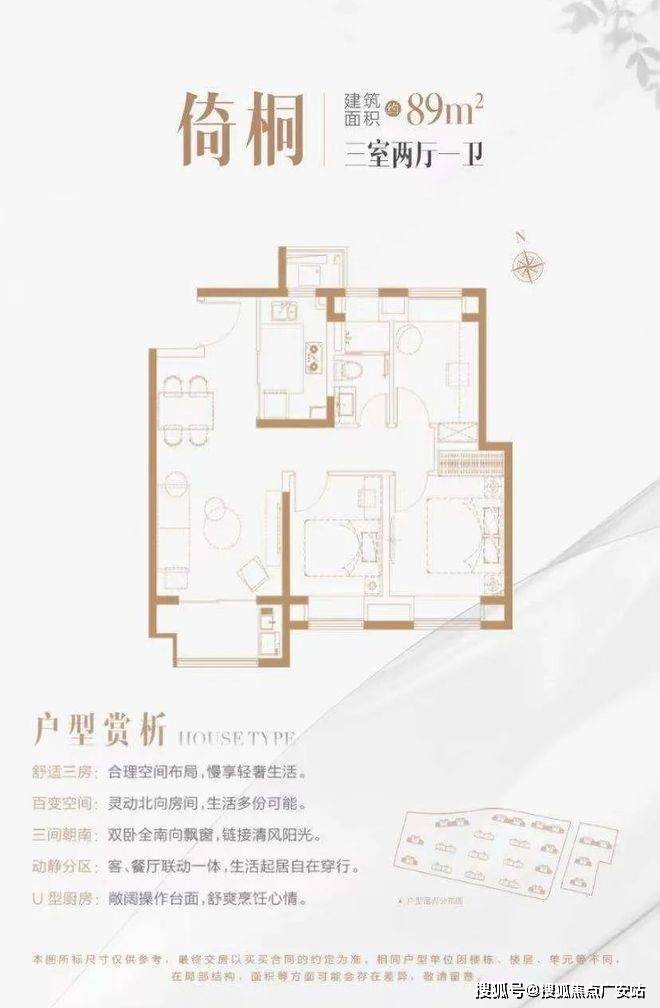 小户型,大考量,大开间、短进深的布局;餐客厅设计分而不离,精心营造空间阔度,合理动线打造弹性日常;双卧全南向飘窗,以舒适格局彰显居家气度。