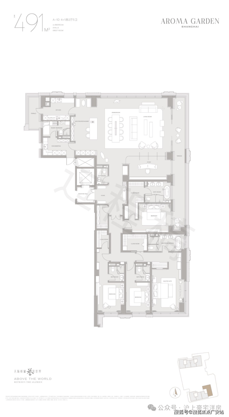 高层户型规划主力面积在260-882㎡区间。豪华主卧套房设计(部分户型为全套房设计),逾百平方客餐厅一体+270度转角落地窗+超宽尺度花园阳台,臻选智能化家居系统及世界顶级精装品牌,赋予居家艺术与智慧生活全新表达。