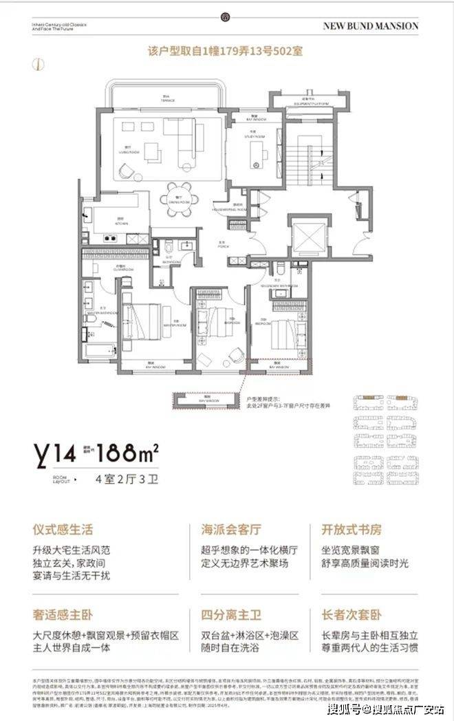 此前热销的大尺度四房“谢幕返场”。最后一批约139-149㎡改善4房,采用经典四叶草设计,针对舒适设计的大尺度面宽、双套房、全飘窗等,为多孩或三代同堂家庭提供了“一步到位”的改善方案,经典念念不忘,必有回响。