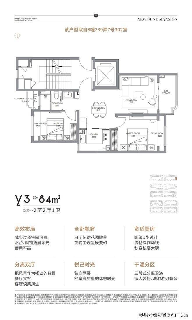 建面约84㎡的两房,拥有滨江洋房的最后门票!零过道浪费设计,全卧飘窗设计,观景阳台。汇集宽U厨房元素,面积小、功能全、低门槛。这在上海“7090”政策取消、大户型当道的背景下,未来基本无同款。