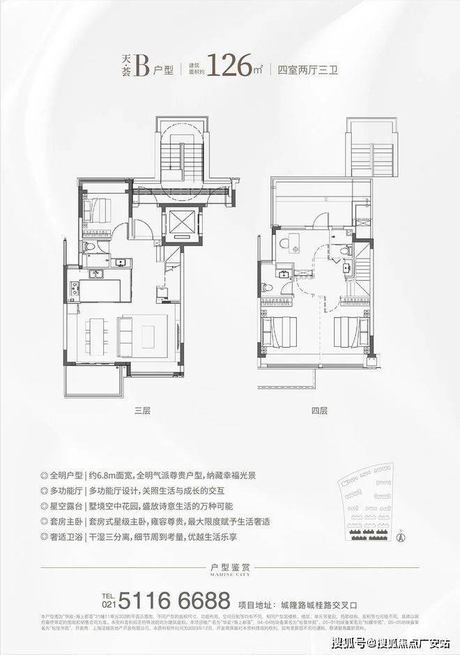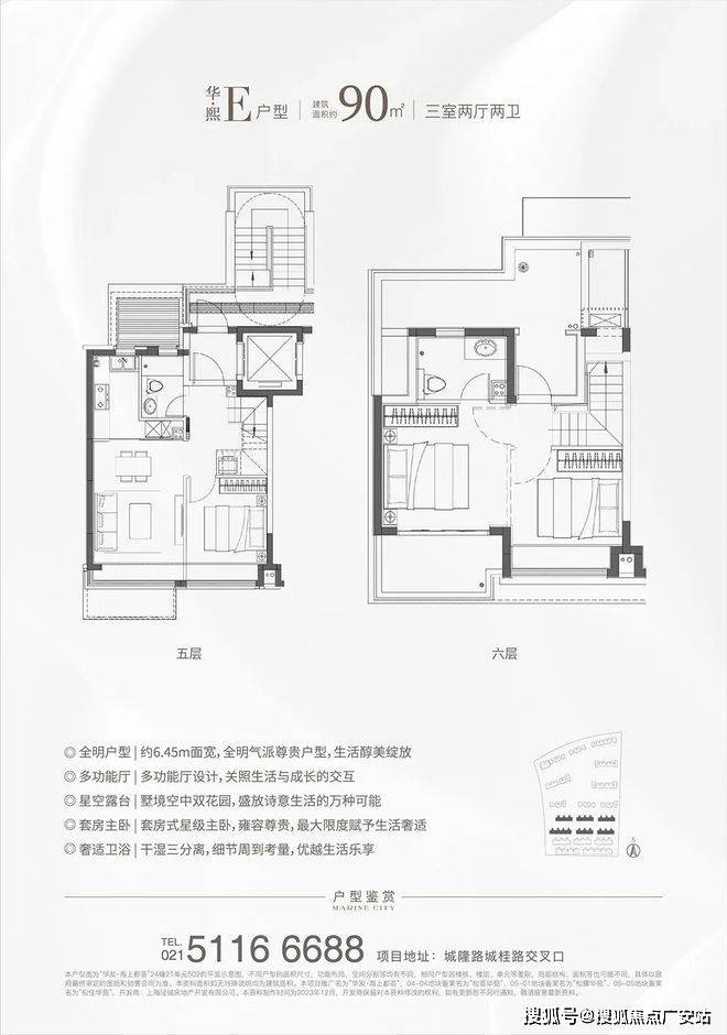 除了高层户型,项目还有建面约90-136㎡叠墅户型。叠加的优点非常多,相较于大平层,叠加区域分割清晰,会客区、休息区等可以明显区分开,互不干扰。同时,居住的私密性强,给到墅居的空间感,得房率相较于高层产品也更高。作为居住业态的高阶形态,舒适度和仪式感也更胜一筹!
