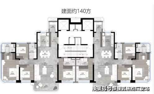 项目共规划了三个面积段:120㎡、140㎡和190㎡,都是南北对流双阳台四房。其中,140㎡为主力户型,约278套;190㎡约124套,120㎡最少,大概90套。使用率高达120%。此外,所有楼层的层高均超过3米,其中7/8栋更是达到约3.3米,空间感极为宽敞。特别值得一提的是,项目大门长达88米,高达10米,被誉为广州门王,大量运用奢华石材,彰显非凡气派。项目建筑立面主要使用铝板和玻璃,全部无漆化处理,提升了建筑的整体美感。
