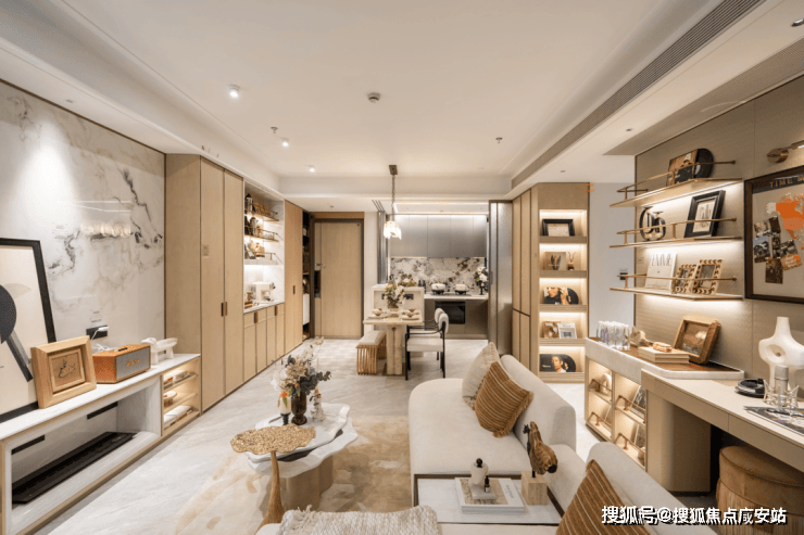 看不见的巧思——立体收纳系统:项目层高达到3.1-3.3米,借此优势创新打造了“竖向收纳”体系,通过顶部储物柜、机舱式高柜等设计,将垂直空间利用到极致,小户型也能拥有大宅的储物容量。