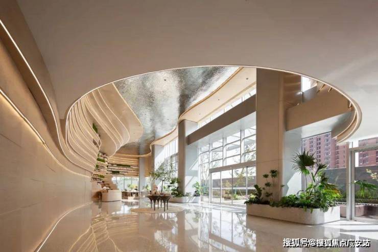 8米挑空大堂仿佛打翻了艺术调色盘,银色水波纹天花板搭配落地绿植,随手一拍都是大片既视感!
