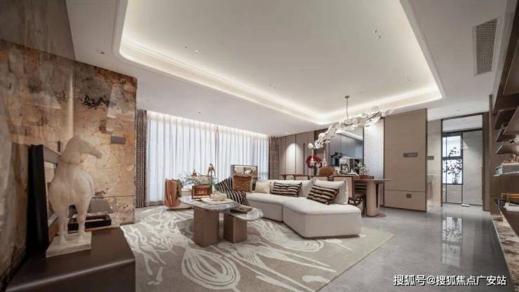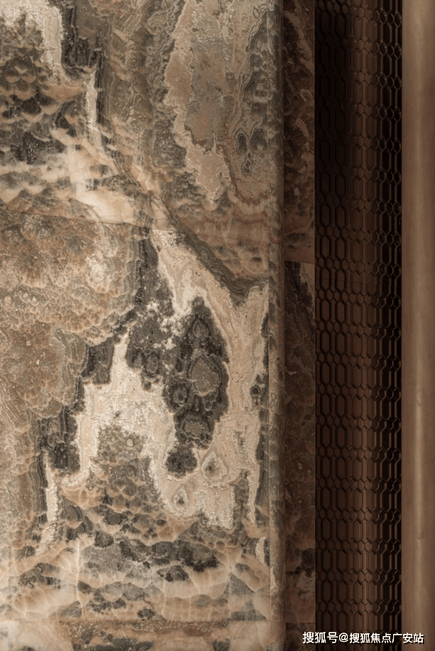 整个公区引入沉香米黄、透光云石、安哥拉黑、福鼎黑、橙皮红、宝格丽紫等近二十种全球奢石,宛如一座流动的奢石博物馆。