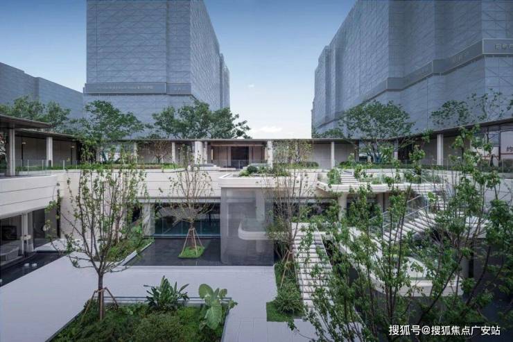 点睛之笔在于4层悬浮式阶梯,设计理念效仿全球十二大奢华酒店之一的迪拜丽晶公寓,每一个观景露台都种植着不同的植被,一步一景,更为重要的,是不同的露台对应着不同的观景视野点,能够将不同高度的下沉式庭院景观,通过极其优雅的方式传递给业主。