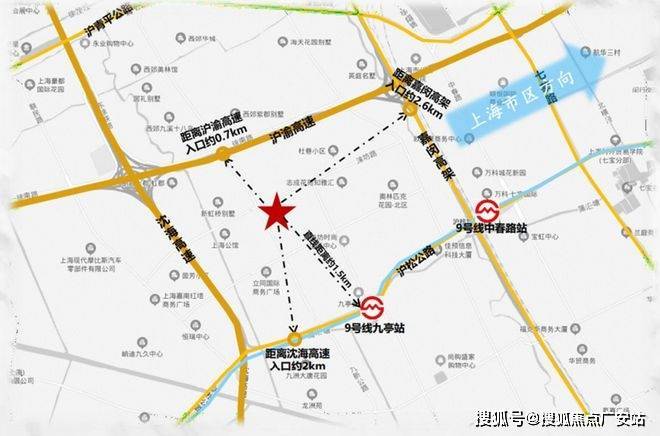 地铁:本案直线距离9号线九亭站1.5km,8 站直达徐家汇(约30分钟);