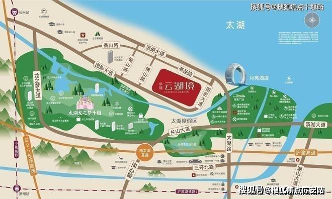 云湖境东侧约*米为南太湖,坐拥一线临湖绝佳地段,揽尽湖山风华。