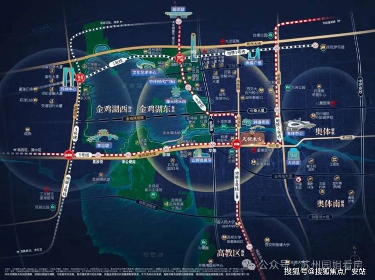 双轨交汇-5/8号线(在建)交汇,5号线苏州换乘王贯穿姑苏/园区/新区,1站山姆/1站奥体/3站圆融/5站园区站。