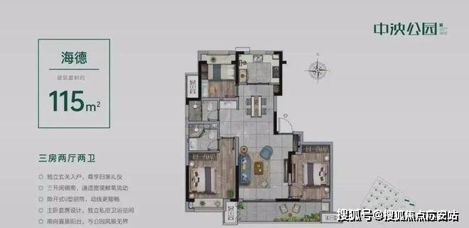 101平-3-2-2,17幢东边户一梯两户,仅剩十余套房源,优质楼层可选性不高。成品三房两卫,户型如下,总价210万左右