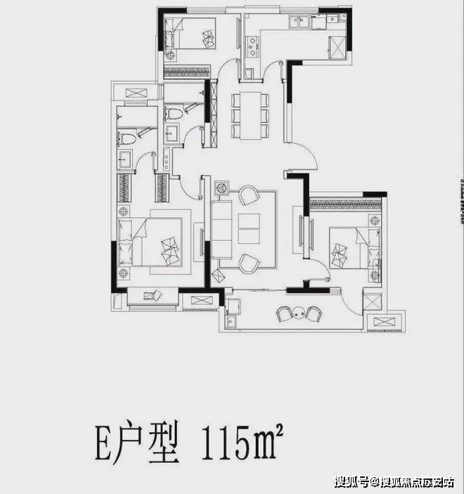 120平4-2-2,总价240万-250万3+1房,九宫格格局,三叶草户型,双阳台,适合人口较多的入门改善客户