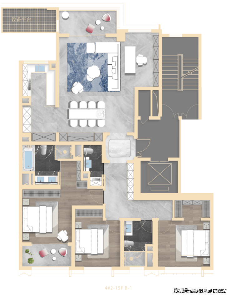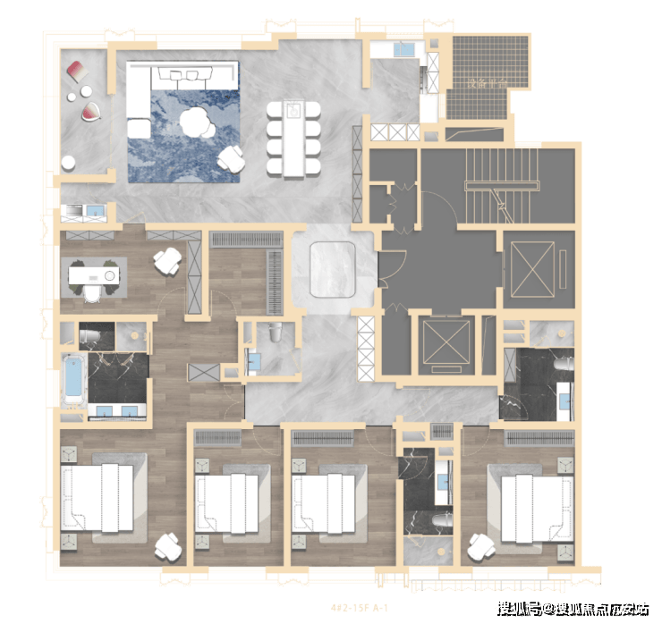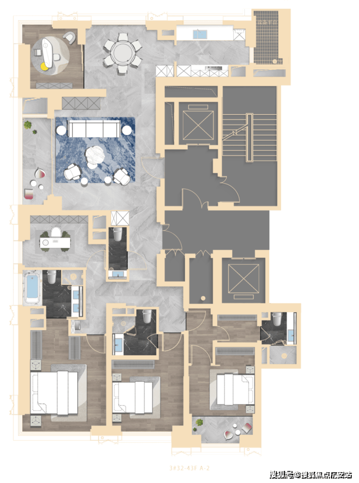 小高层得房率高达81%(行业普遍约75%),以建面约193㎡户型为例,实际使用面积相当于市面上208㎡产品,节省超200万元购房成本。