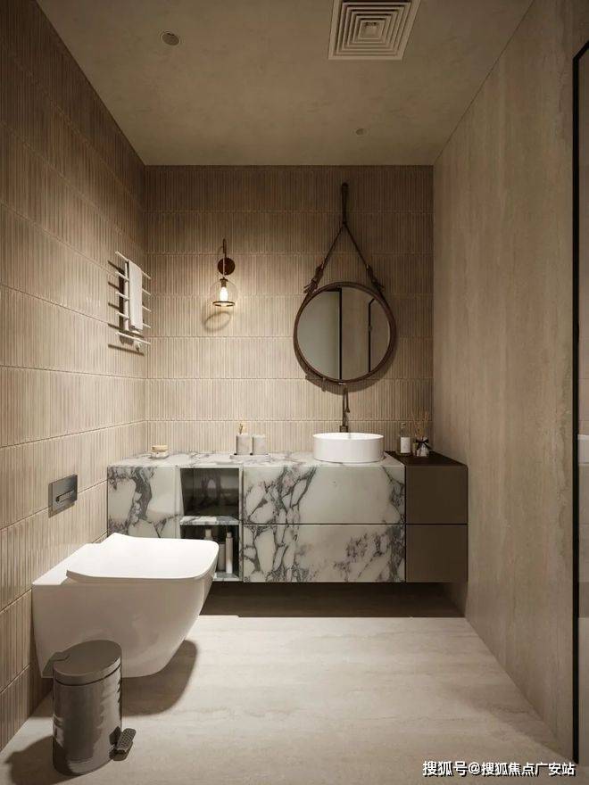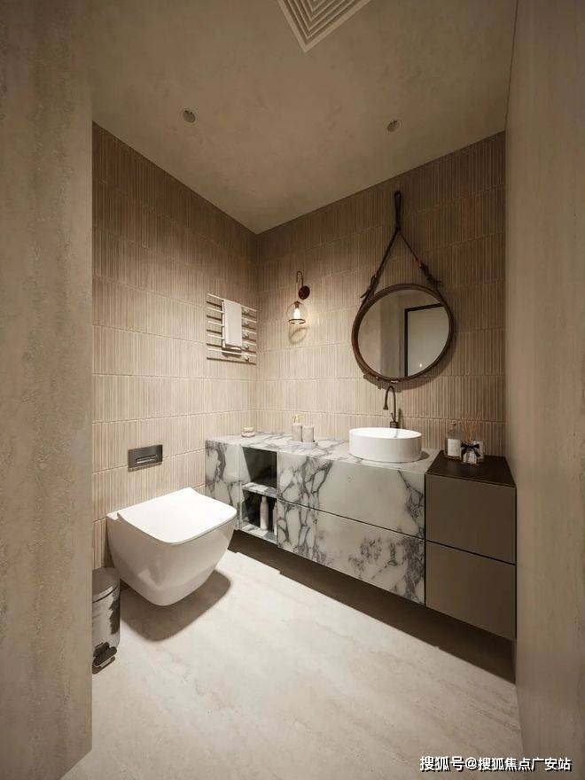 主卧采用留白设计,保留部分家具,摒弃繁复装饰与色彩堆砌,以形体美、轻重色和谐及精准功能布局满足家庭需求。洞石纹板与原生木色搭配,低饱和色调奠定幽远宁静基调。简练线条与天然材质纹理交织,褪去冗余,在素净空间中营造出温润的时光质感。