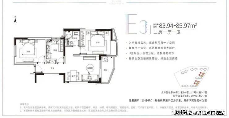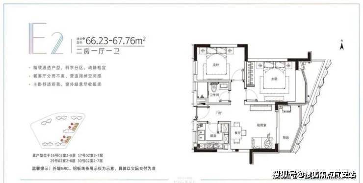 建面约78-91.22平米的小户型,两房两厅一卫的格局,非常适合年轻刚需家庭上车。