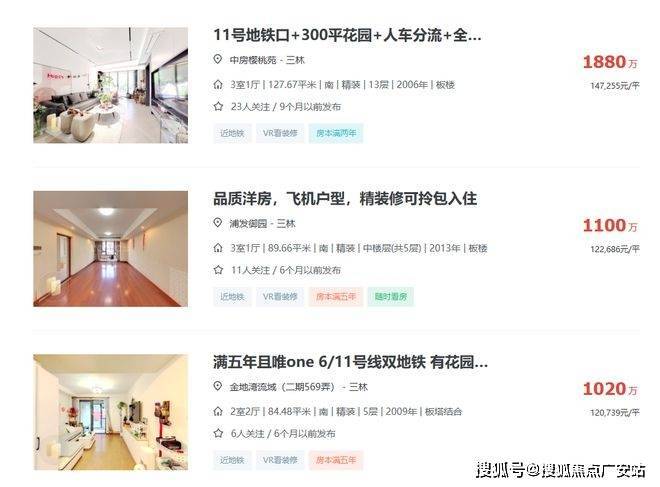 板块内部,由于三林板块规划起步晚,「永泰三里城」周边几乎都是次新电梯房,板块内二手房挂牌均价9万/㎡左右,不少户型较好的楼盘甚至能跑上10w+