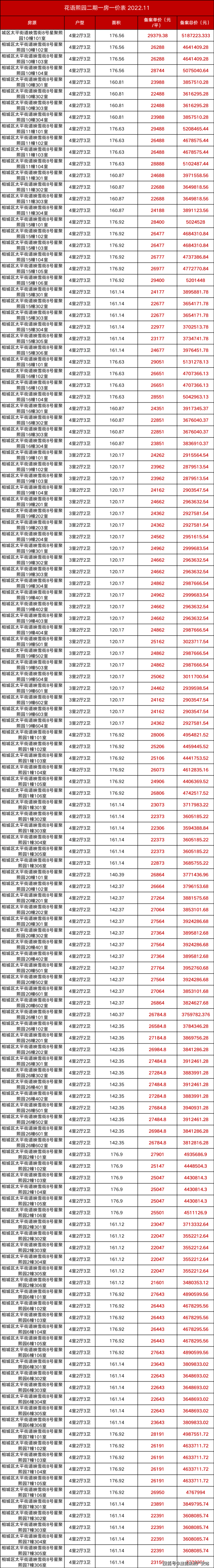 一房一价表如下,建议收藏