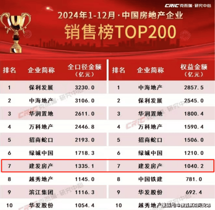 克而瑞数据显示,2024年建发以1335亿销售额居行业第7位,是地方国企开发商第一名。