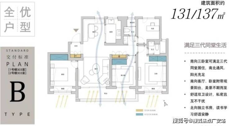 建面约131/137㎡四房两厅两卫: