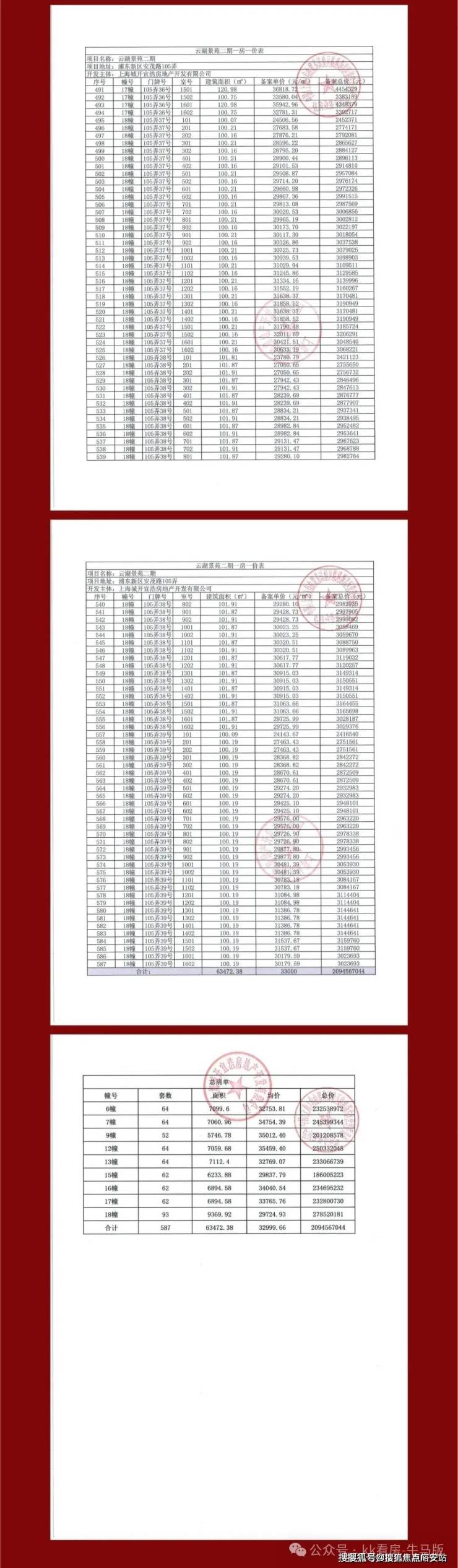 一房一价表