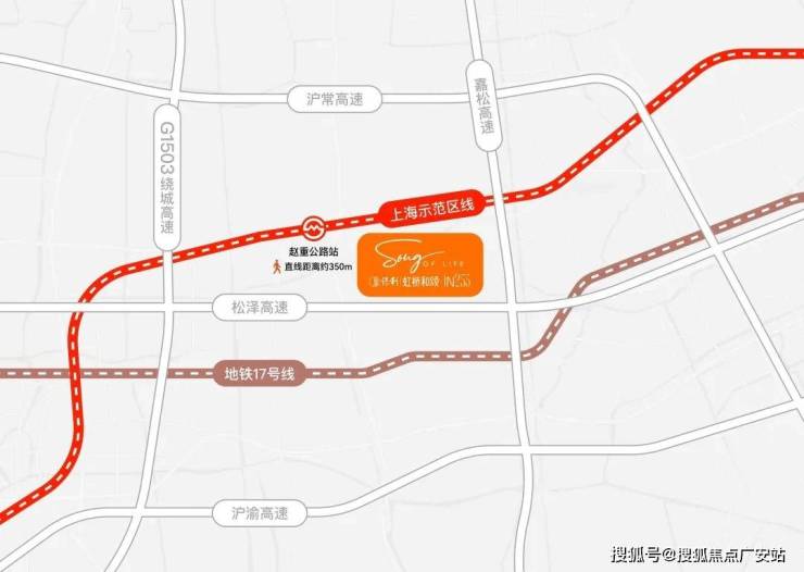 保利虹桥和颂·IN255不仅有轨交规划正在落地,且直线距离示范区线赵重公路站(在建)仅约350米,是不可多得的真轨交盘,2站前湾、3站虹桥枢纽、5站华为基地。