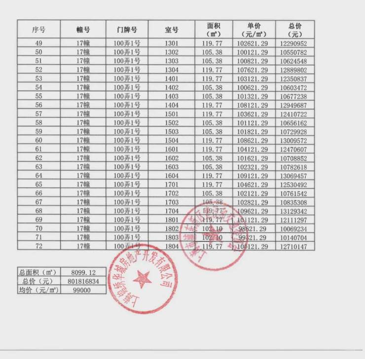 一房一价表如下: