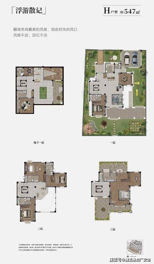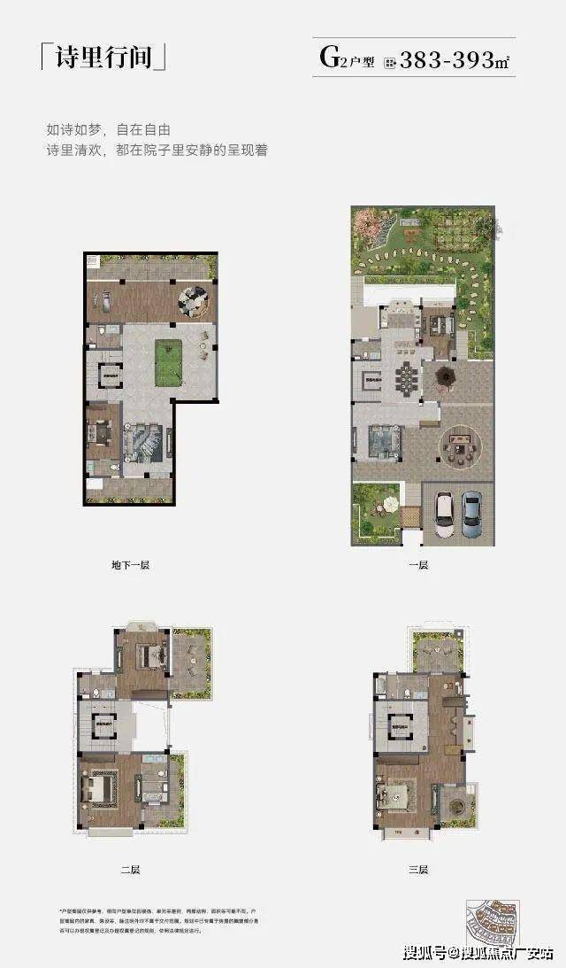 在售的别墅面积主要是393㎡的双拼和547-646㎡的独栋;