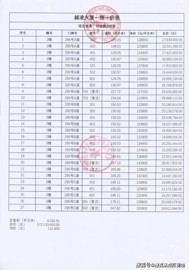 项目一房一价表▼