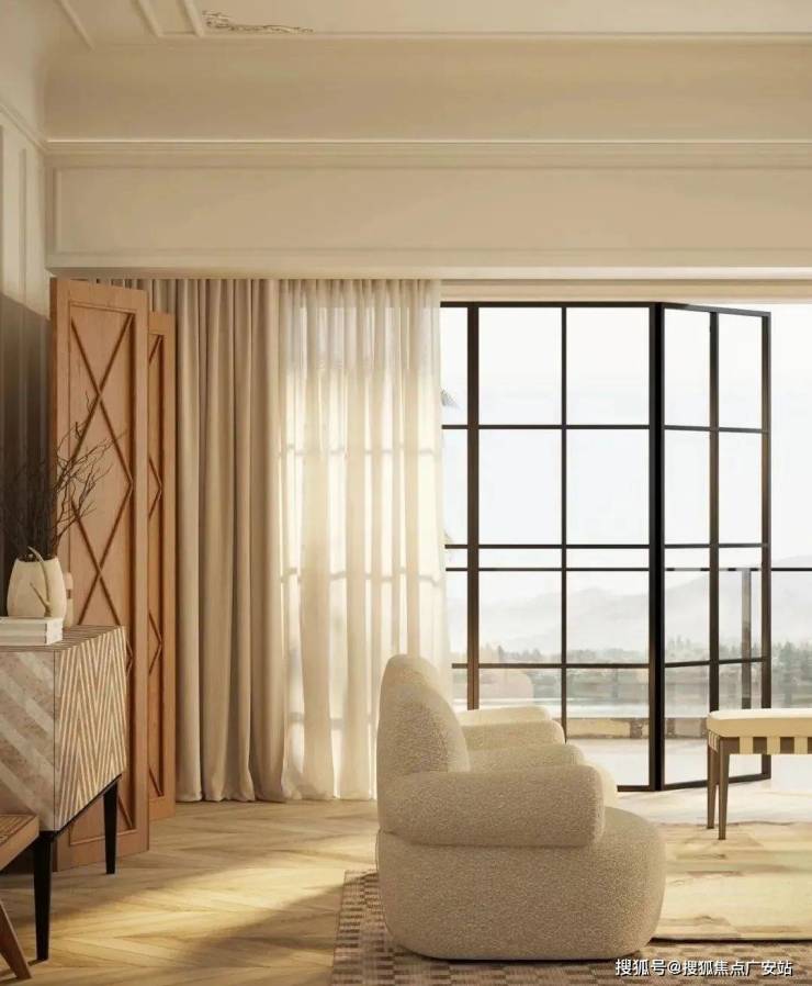 整面落地窗将城市光影引入室内,阳光在定制家具上流转。微风拂过纱帘时,整个客厅便有了生动的表情。