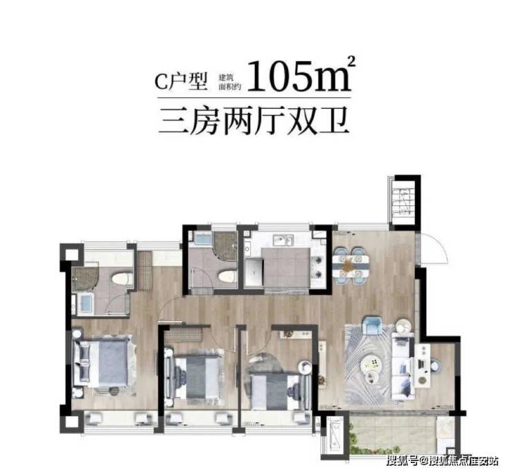 项目主推建面约73-105m2-3房