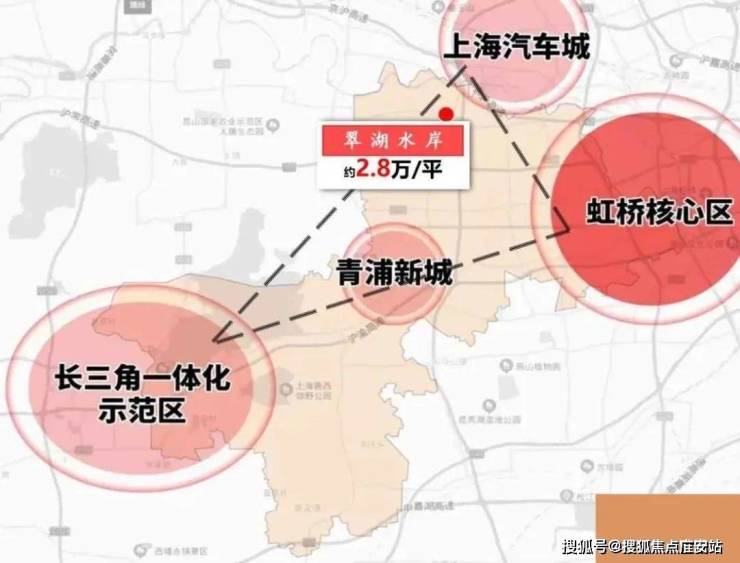 区位未来高地一大虹桥/长三角一体化示范区,上海城市中心西移,大虹桥对标陆家嘴成为世界性综合商务区,将成为世界级的交通枢纽、商务中心、会展中心。翠湖水岸位于虹桥西侧,直线距离17公里左右,通过沪常高速、松泽高架紧密相连,驾车30分钟便捷直达。