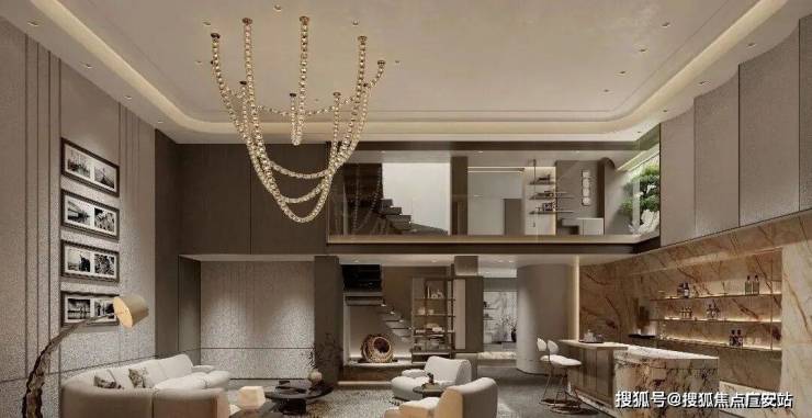 其中,南入口约52米面宽超级界面,钻石雕刻星光穹顶,门头整体采用沉香米黄石材为主题色调,中间大面奢石作为背景,提升整体奢品格调,匹配太湖湾人物身份。