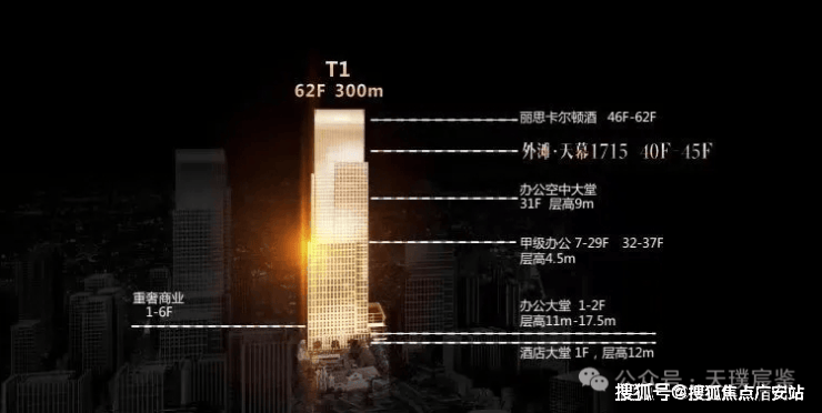 • 设计匠心:300米外滩顶峰建筑,标准层高4.5米,幕墙展开面长度49-61米,极致视野格局
