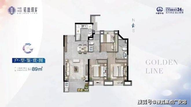 89㎡户型:三房双卫设计,得房率79%,空间利用率高于区域同类产品