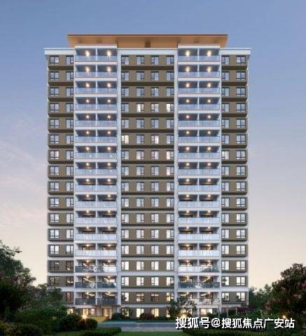 建筑线条简洁现代,立面材质采用玻璃、米白色真石漆及深灰色涂料,基座部分采用米白色真石漆,现代美学感强烈。