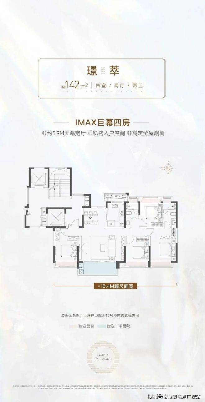142㎡:横厅面宽5.9米,三卧朝南,适合超级改善需求