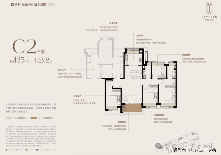 建面约135m²户型,在1100万级四房中,不仅拥有LDKB超宽客餐厅还拥有极致改善尺度!