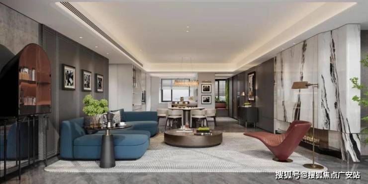 【中央会客厅】LDKB一体化设计,厨房、餐厅、客厅、阳台彼此联通,客厅通铺至阳台,实现空间场景的多重变化,深化家人间的互动交流。