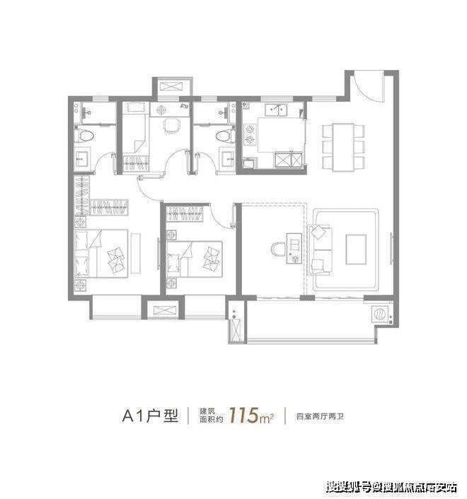 这个约115㎡的4房2厅2卫户型,光明星城售楼处电话:400-887-8824【营销中心电话】是目前来看,临港改善户型中更具性价比的一个。