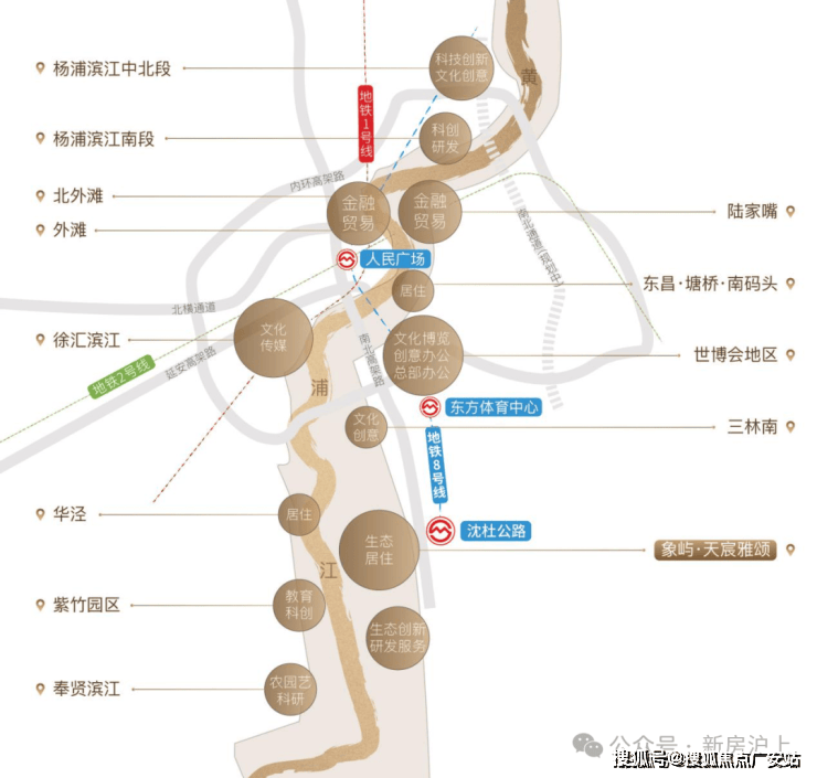 1、8号线+南北高架一路串联2大滨江黄金三角,占位前滩后花园!众所周知,高端城市资源高度集中在2大滨江黄金三角:由外滩-陆家嘴-北外滩构成的传统中央商务区,由前滩-徐汇滨江-世博构成的新兴中央活动区。其他所有板块几乎都是经由它的价值辐射。换言之,谁距离他们更近通勤更快谁就更有未来!全市600-1000万的新房供应板块,几乎都在城市的外围,与2大黄金三角相距甚远,通勤时间也较长。有且只有浦锦板块,通过8号线和南北高架+浦星公路,同时串联2大黄金三角,未来前景不言而喻!