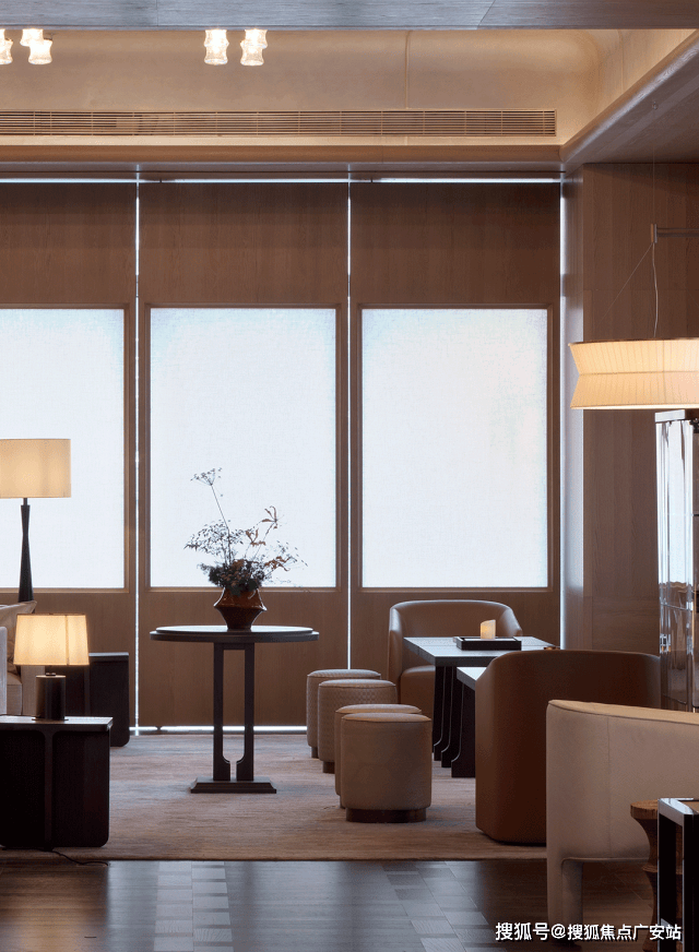 艺术长廊,凹龛处布置的艺术品以“东西”与“时间”为序列层层推进,构成东西文化的对话,以容纳海派文化底蕴的气象万千步入艺术长廊,便被充盈其中的东方温润气息所包裹。光线轻柔洒落,细腻的材质和设计的处处细节都散发出宁静的氛围。
