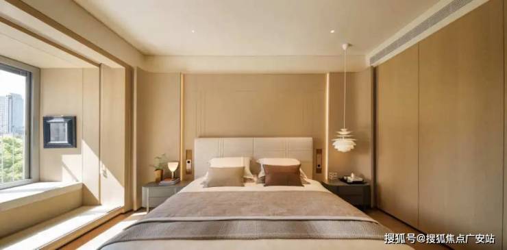 主卧瞰景,静安绿肺,晨醒绿意,呼吸清新。节奏把握,生活内核。隐于静安,繁华中平衡“疾缓”。空间布局紧凑,客厅侧主卧连贯衣帽、卫浴、书房,一体流畅,迅速舒解都市疲惫,身心呵护,自在从容。