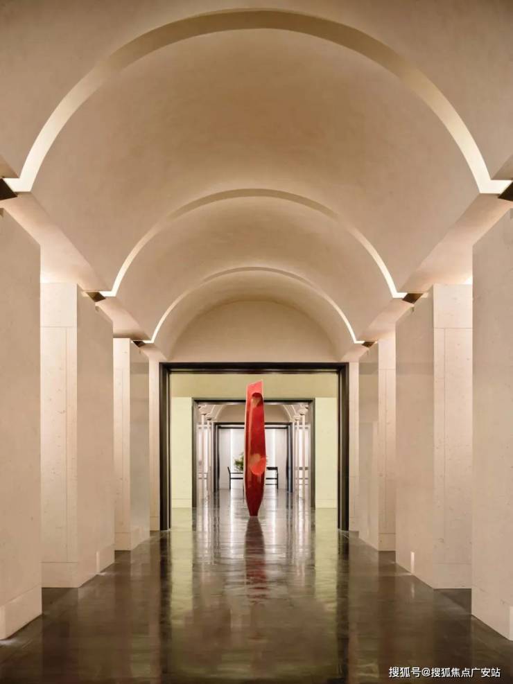 私人会所区域设有酒吧接待专区,细心考虑到洽谈、会客、多人会议、休闲等多种需求,即便“足不出户”,也能享受到酒店级品质体验通过创造“一间美术馆”,艺术会所试图为居者构筑出一个“生活之上”的精神殿堂。归家大堂入口,设计师琚宾突破以往设计语言,他借鉴古典建筑中标志性的“序列感”,结合“空”的视觉设定,拨开内在关于艺术思考的矛盾性,在有限的空间内,营造出一种神圣而庄重的氛围,唤起了用户内心的身份认同感和对世界的敬畏之心。