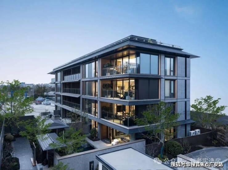 轻盈飞檐、错落戗角,承载江南建筑的雅致韵味,通透玻璃幕墙、沉稳石材肌理,注入当代居住的简约质感。